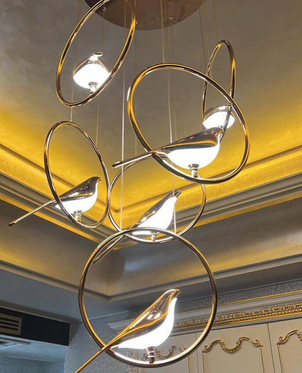 وارداتی و دارای کارت گارانتی 5 سال می باشد. لوستر محبوب و پر فروش طرح پرنده در دو نوع رینگ طلایی (رینگ بدون نور) و رینگ مشکی (دارای نور) تولید می شود. قطر حلقه 30 و طول پرنده 35 سانتیمتر می باشد. فعلا رینگ طلایی موجود است.